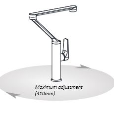 SIZE: 356mm high x 291mm with maximum reach to 410mm