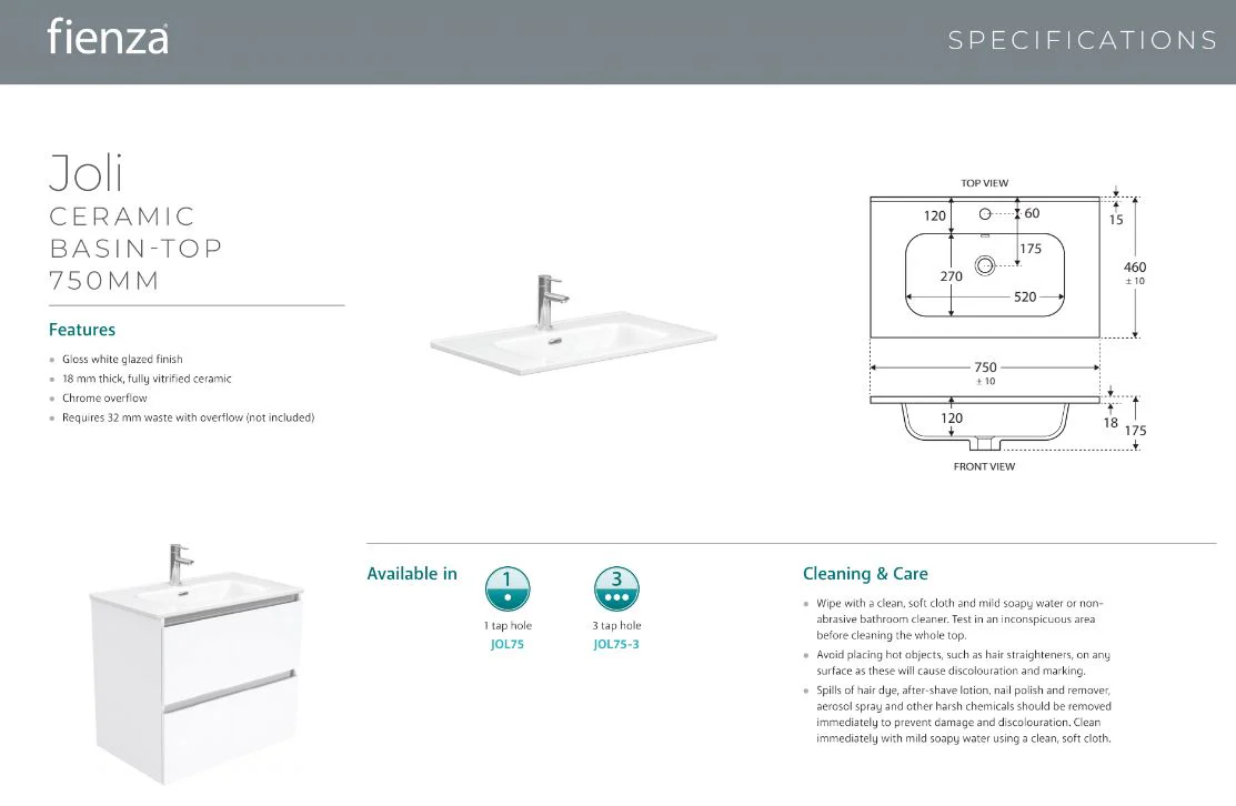 - Part of Fienza’s universal vanities range
