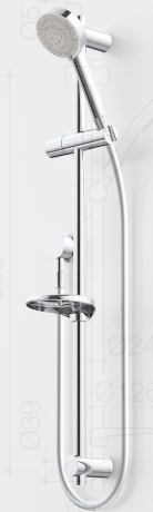 The Liano Nexus Rail Shower by Caroma is a compact and stylish system. It has round clean lines, and a polished chrome finish.