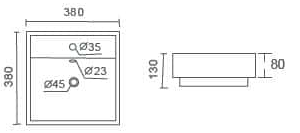 SIZE = 380mm wide x 380mm deep x 130mm high